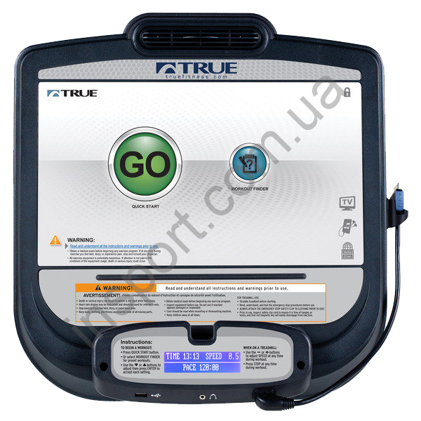 16" сенсорный экран (возможность выбора одного из 12 языков, включая русский), дополнительный LCD дисплей для отображения основных параметров тренировки