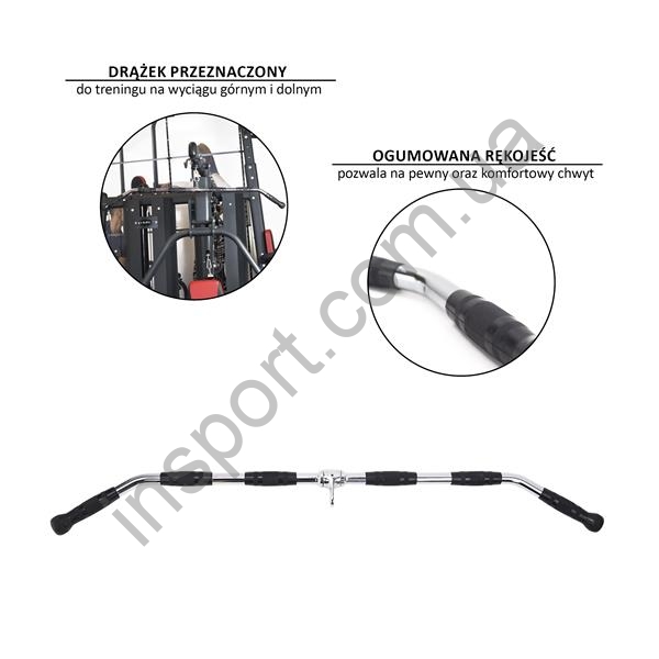 Рукоятка HMS FITNESS изготовлена из высококачественной стали, что позволяет тренироваться со значительной нагрузкой.Длина и количество прорезиненных ручек гарантируют много возможностей захвата, от очень узких до очень широких. Крайние ручки находятся под углом, поэтому при выполнении упражнений на тягу верхнего блока локти пользователя будут находится пропорциально его туловищу, а это способствует более точному и эффективному выполнению таких упражнений. Резиновые ручки на рукоятке обеспечивают надежный, удобный и крепкий хват, без созкальзывания рук во время выполнения упраженения.