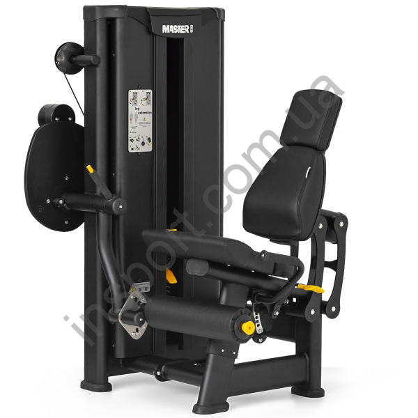 Разгибатель бедра Master-Sport Leg Extension BMM 12 из серии грузоблочных тренажеров BioMotion используется для тренировки четырехглавой мышцы бедра. Конструкция устройства изготовлена из плоского овального стального профиля. Защита грузоблока выполнена из высокоэстетичного полупрозрачного литого оргстекла. Стек снабжен селектором с магнитом для выбора желаемой нагрузки с шагом 5 кг. Элементы обивки соответствуют анатомическим формам тела, что способствует комфорту и безопасности использования оборудования. Пневматическая регулировка спинки (5 положений) и эргономичная рукоятка обеспечивают чрезвычайно легкую и точную настройку устройства. Машина имеет 6-ступенчатую регулировку угла плеча (используется в реабилитации) и 7-ступенчатую регулировку положения ролика. Дополнительным преимуществом является уникальная система переноса нагрузки BSS, которая защищает от травм, вызванных перегрузкой мышц, а также повышает эффективность упражнений до 30%.