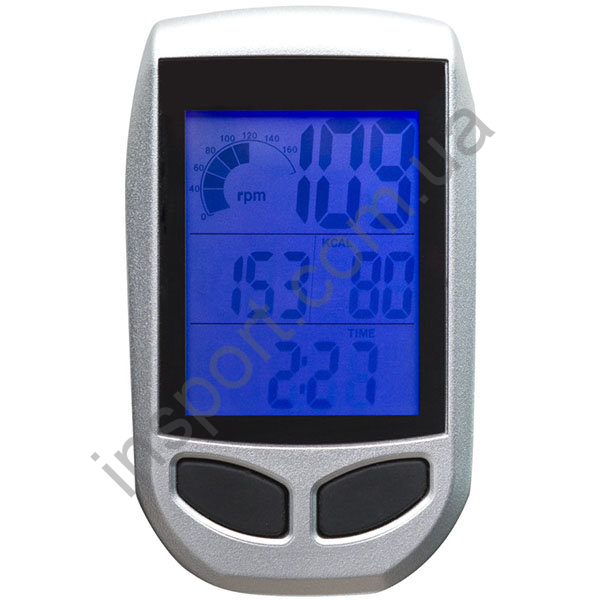 Показания дисплея Время тренировки, пройденная дистанция, скорость, расход калорий, пульс, частота вращения педалей