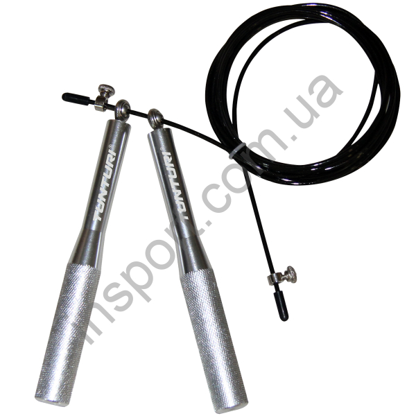 Регулируемая скакалка Tunturi Adjustable Skipping Rope with Bearings 14TUSCF099 с алюминиевыми ручками со встроенными подшипниками, изготовлена из стального троса, легко регулируется по длине, максимальная длина - 300 см.