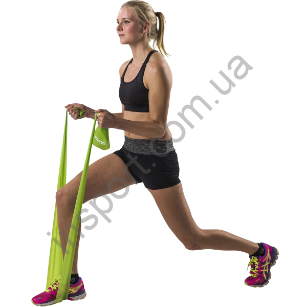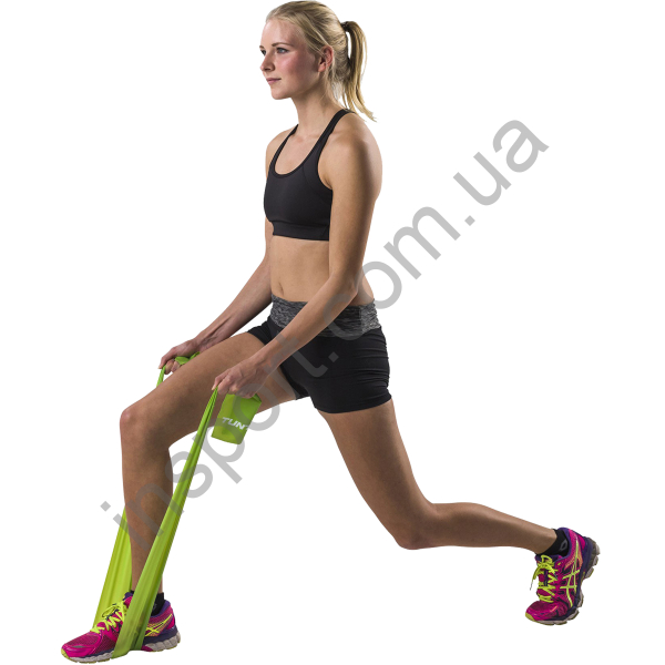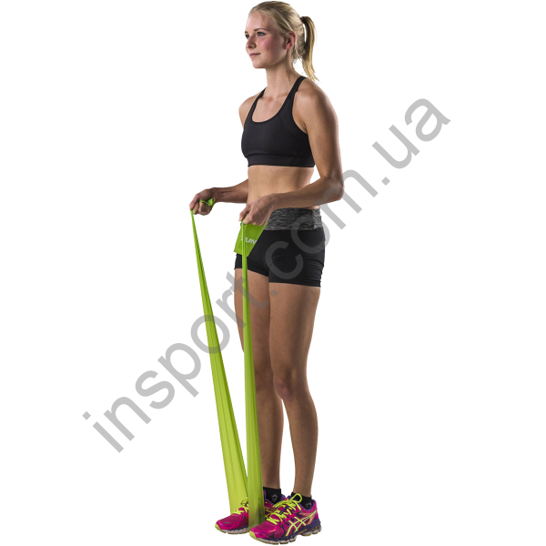 Эластичная лента для йоги/пилатеса Tunturi Resistance Band Medium 14TUSFU138 зеленого цвета, изготовлена из термопластичной резины, предназначена для разминки перед основной тренировкой, также используется для развития мышц ног, бедер и рук, повышения гибкости.