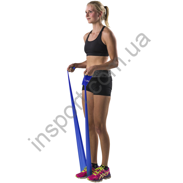 Эластичная лента для йоги/пилатеса Tunturi Resistance Band Heavy 14TUSFU139 синего цвета, изготовлена из термопластичной резины, предназначена для разминки перед основной тренировкой, также используется для развития мышц ног, бедер и рук, повышения гибкости.