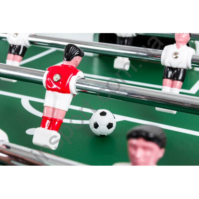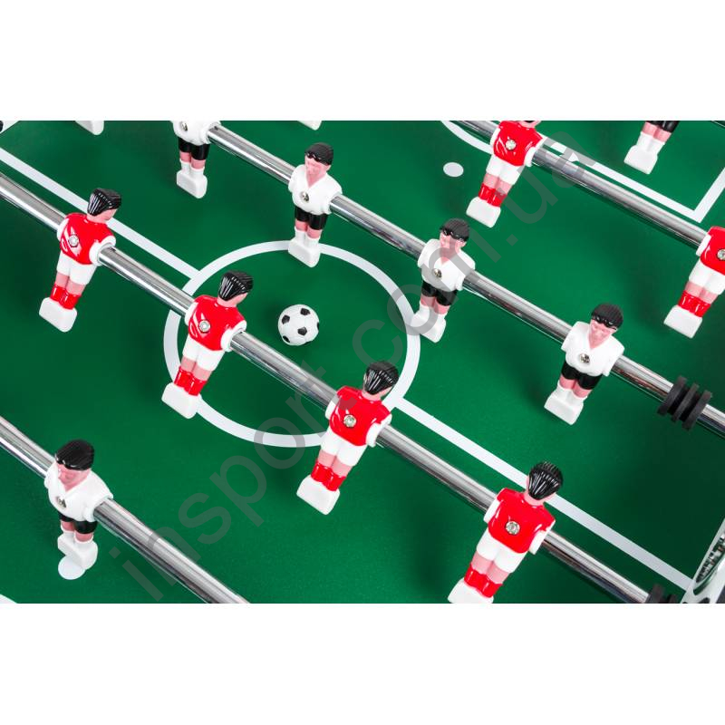 До деталей продуманная конструкция настольного футбола гарантирует Вам комфорт и удобство во время игры. Покрытие поля приятного зеленого цвета не отвлекает игроков и позволяет сосредоточить внимание на мяче. Стол оборудован регулируемыми ножками, которые компенсируют неровности поверхности. Также для Вашего удобства предусмотрены подставки для напитков.