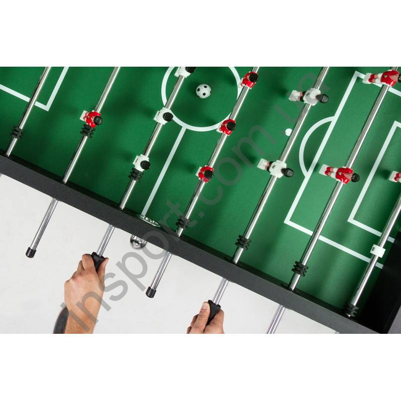 До деталей продуманная конструкция настольного футбола гарантирует Вам комфорт и удобство во время игры. Покрытие поля приятного зеленого цвета не отвлекает игроков и позволяет сосредоточить внимание на мяче. Стол оборудован регулируемыми ножками, которые компенсируют неровности поверхности. Также для Вашего удобства предусмотрены подставки для напитков.