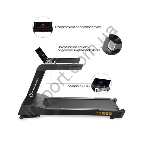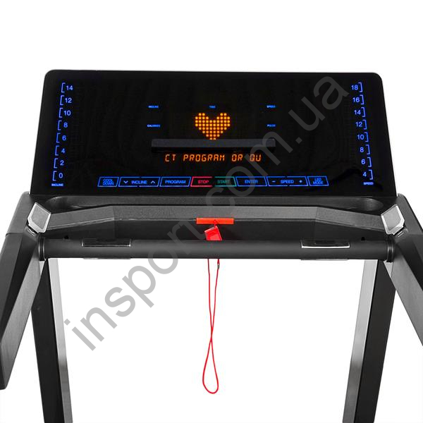 Программы тренировок: 30 (20 фиксированных, 4 возможности для настройки собственных программ, 2 программы HRC в которых беговая дорожка регулирует скорость и угол наклона в соответствии с частотой сердечных сокращений - 60% и 80% от максимальной частоты сердечных сокращений, программа THR, в которой вы устанавливаете собственную частоту сердечных сокращений, которую хотите сохранить, программа «низкая скорость», адаптированная для пожилых людей, программа «охлаждение», т.е. успокоение тела, где скорость постепенно уменьшается, как последняя ручная программа, в которой каждый параметр контролируется пользователем)