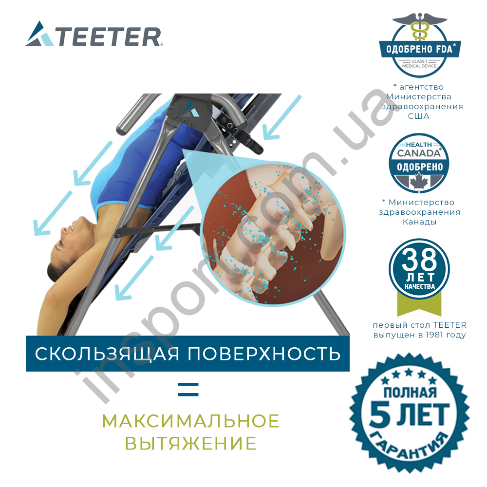 Инверсионные столы Teeter отличаются рядом уникальных запатентованых решений.