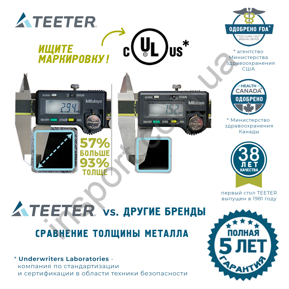 Все столы TEETER покрываются полной гарантией в течении 5 лет.