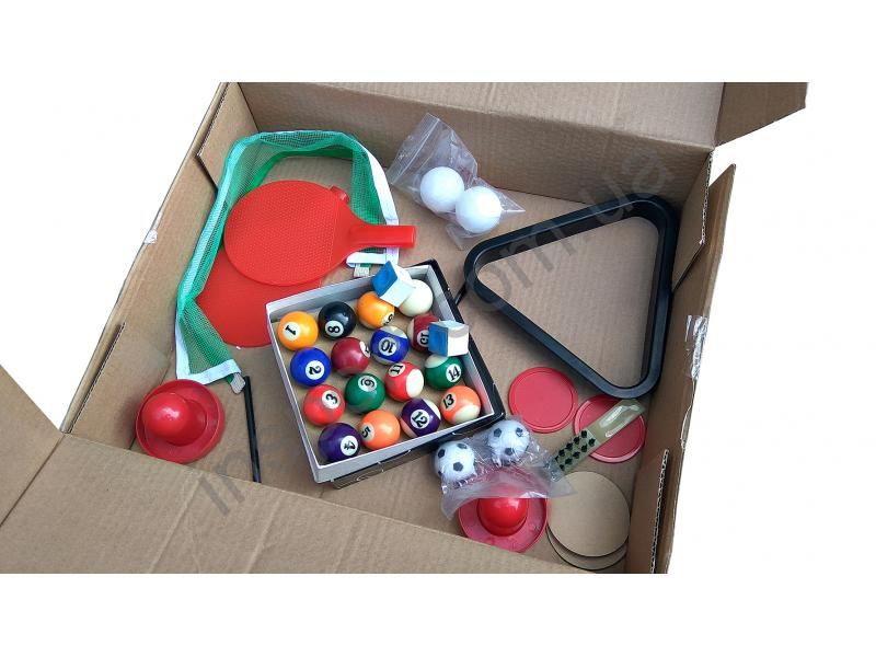Стол-трансформер состоит из четырех увлекательных игр настольный футбол, теннис, аэрохоккей и бильярд, которые легко можно поменять.