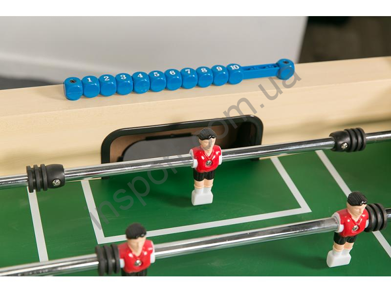 Поле настольного футбола выполнено из МДФ толщиной 10мм и затянуто ударопрочной пленкой с расчерченным футбольным полем, а также имеет специальные ребра жесткости. Итак, подводим итог.