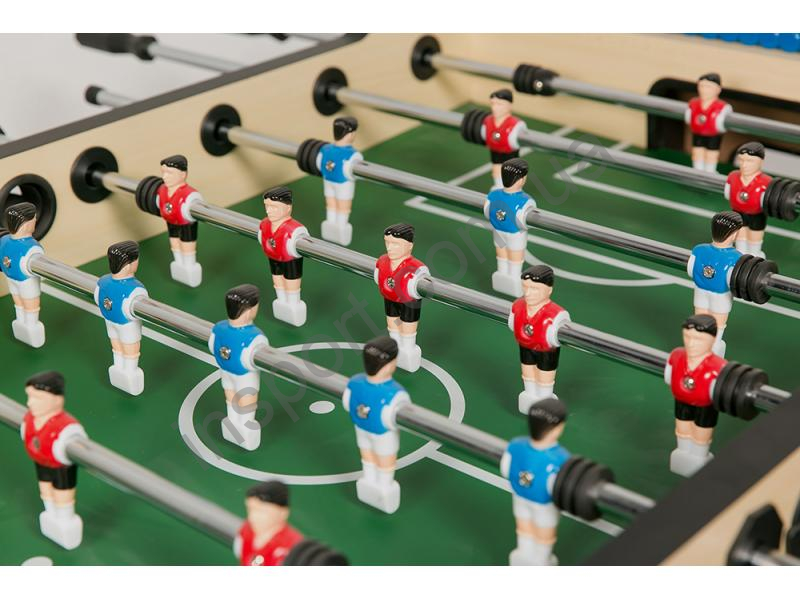 Настольный футбол (соккер) Valencia производства фирмы Artmann отличается от похожих футболов толщиной каркаса 30мм и толщиной ног 35мм, а также имеется две дополнительные перемычки между ногами 12мм и труба, хромированная диаметром 50мм, что придает конструкции футбола максимальная жесткость и способность выдерживать высокие механические нагрузки, т.к. в футбол играют четыре человека.