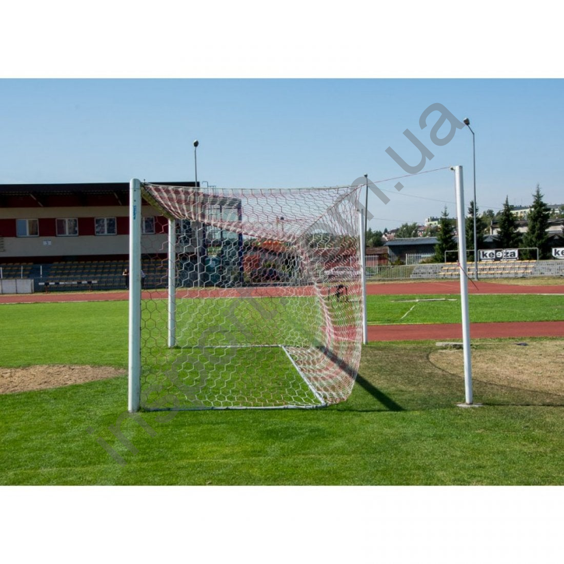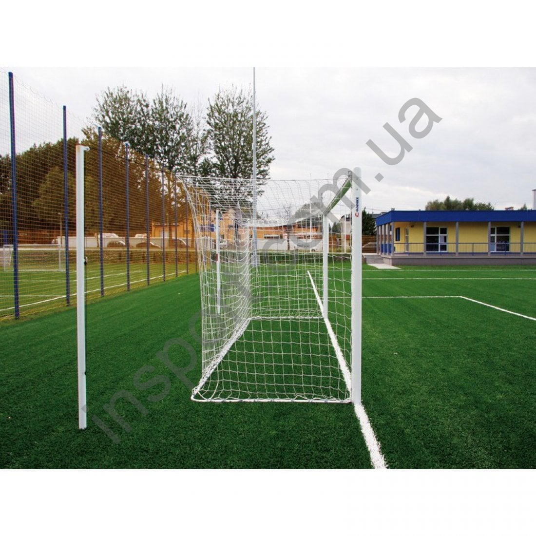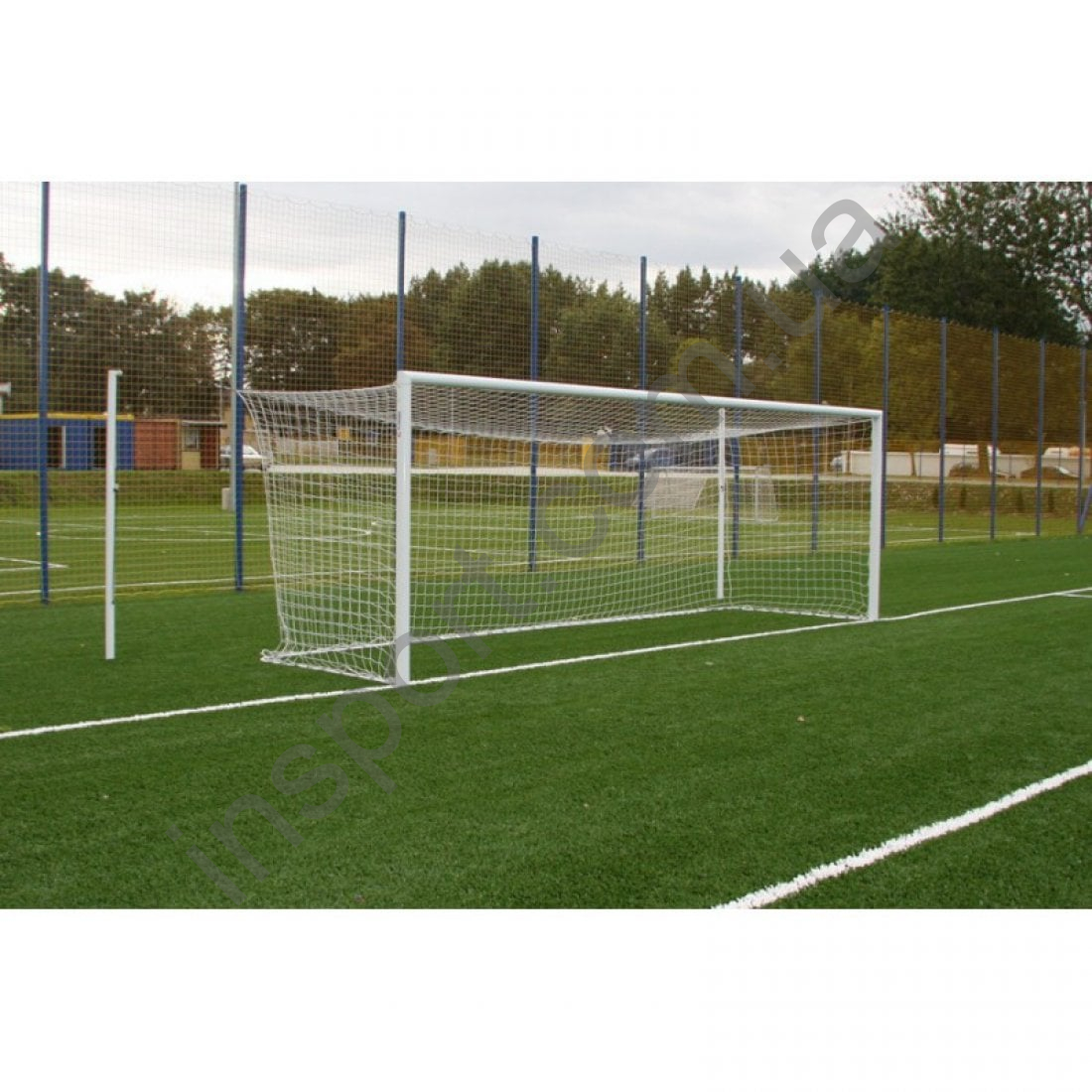 В комплект входят: основная рама ворот, стальные вытяжные мачты из трубы Fi 76 мм, окрашенные белой порошковой краской для натяжения сетки, нижняя рама ворот, алюминиевые рукава с крышками.