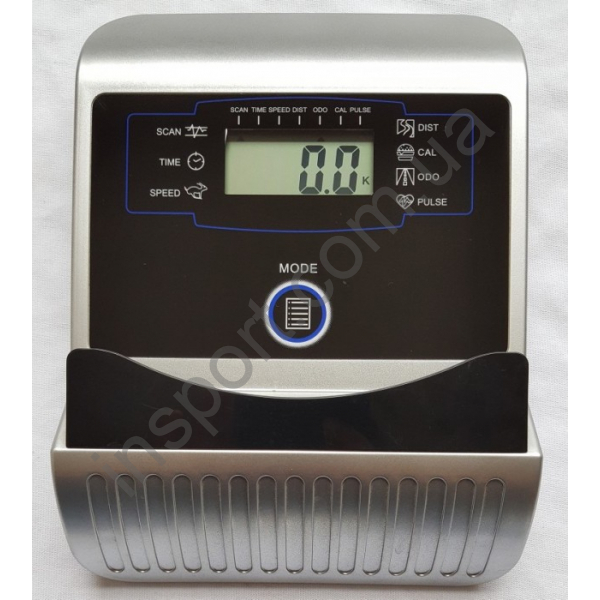 За показатели пульса отвечают вмонтированные в рукоятки сенсорные датчики пульса. Велотренажер удобно перемещать благодаря двум транспортировочным роликам, а устойчивое положение обеспечивают компенсаторы неровностей пола. LCD-дисплей одновременно выводит на экран различные параметры тренировки - время, дистанцию, скорость, калории и пульс. На подставку консоли можно поставить планшет или смартфон - это хороший способ справиться с однообразием тренировок. Конструкция рамы рассчитана на комфортную тренировку пользователей ростом до 190 см и весом до 110 кг.