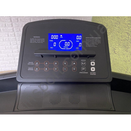Оборудование оснащено электрическим двигателем мощностью 2 л.с. (пиковая мощность – 3.0 л.с.). Благодаря таким параметрам мотора беговое полотно может развивать скорость до 12 км/ч, что обеспечивает широкий диапазон вариантов тренировки – от ходьбы до быстрого бега.