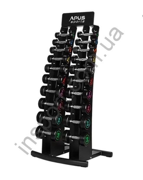 Гантельный ряд 1-10 кг со стойкой 10 пар Apus Sport Palladium Dumbbell Rack
