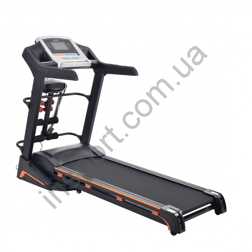 Беговая дорожка входит в комплект с массажером, двумя гантелями.