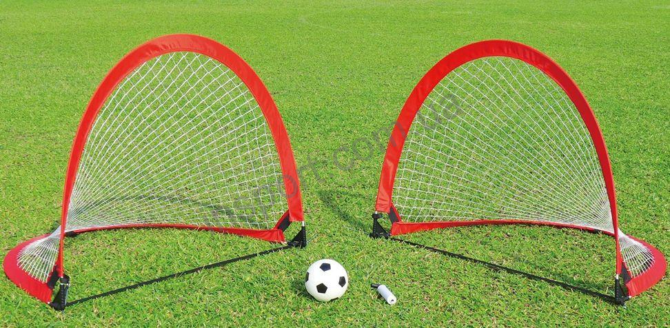 В основе конструкции ворот использованы прутья диам. 7мм из композитного материала, соединительные элементы из прочного полипропилена. Сетка изготовлена из эластичного нейлона.Легкая конструкция и материал ворот сводит к минимуму получение травм при игре, поэтому они рекомендованы для детских заведений (детские сады, школы, лагеря отдыха). В комплект входят двое ворот, мячик и насос.
