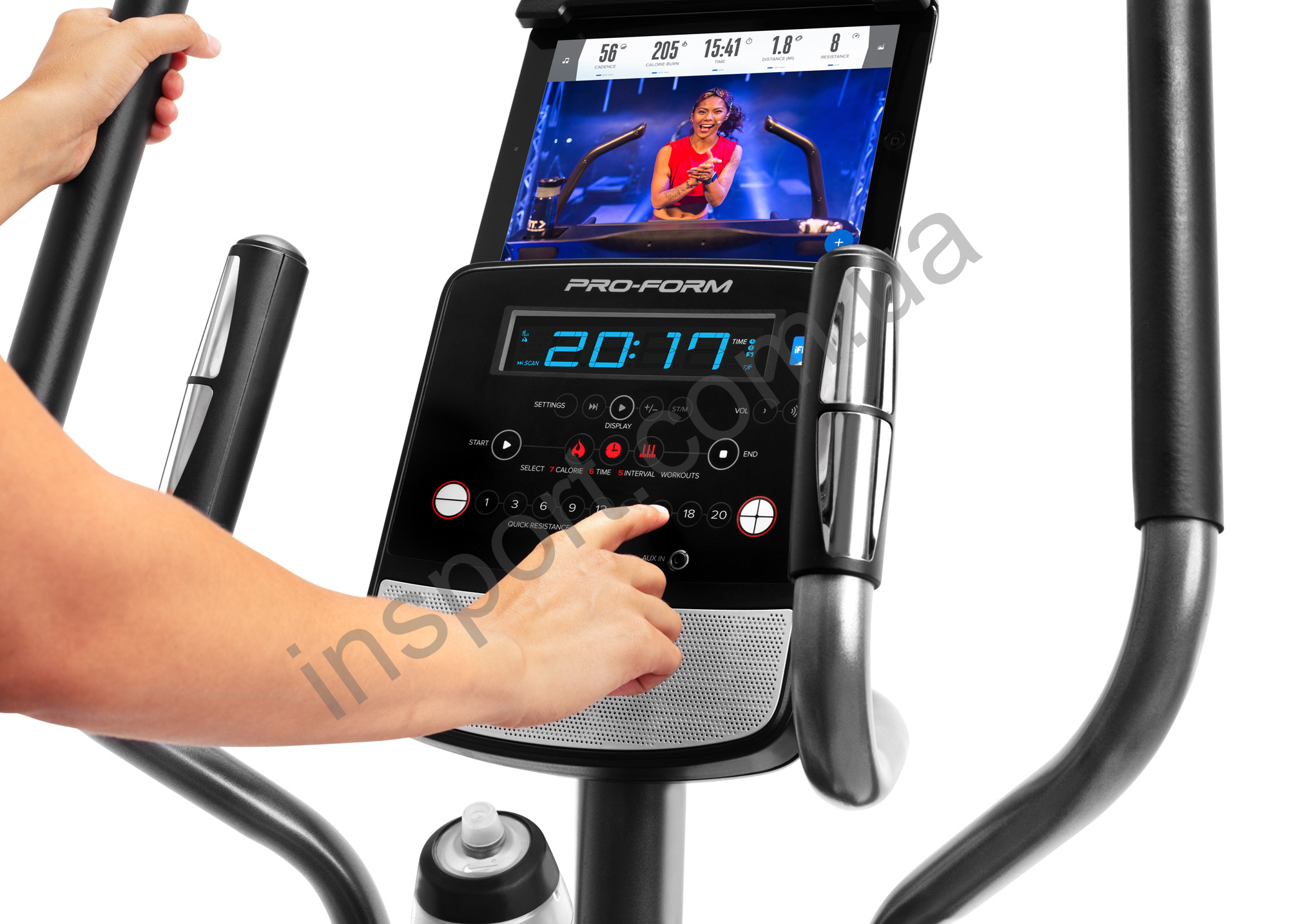 Консоль с LCD–дисплеем и интуитивным интерфейсом поддерживает соединения Bluetooth для нагрудного датчика пульса и смарт-устройств через приложение iFit Просто скачайте приложение iFit Coach Redy из App Store или Google Play на ваш телефон или планшет, и следуйте инструкциям по созданию аккаунта iFit и установке настроек. Тренажер также имеет держатель для планшета и бутылки, разъем для подключения музыкального плеера и транспортировочные ролики для легкого перемещения после тренировки.