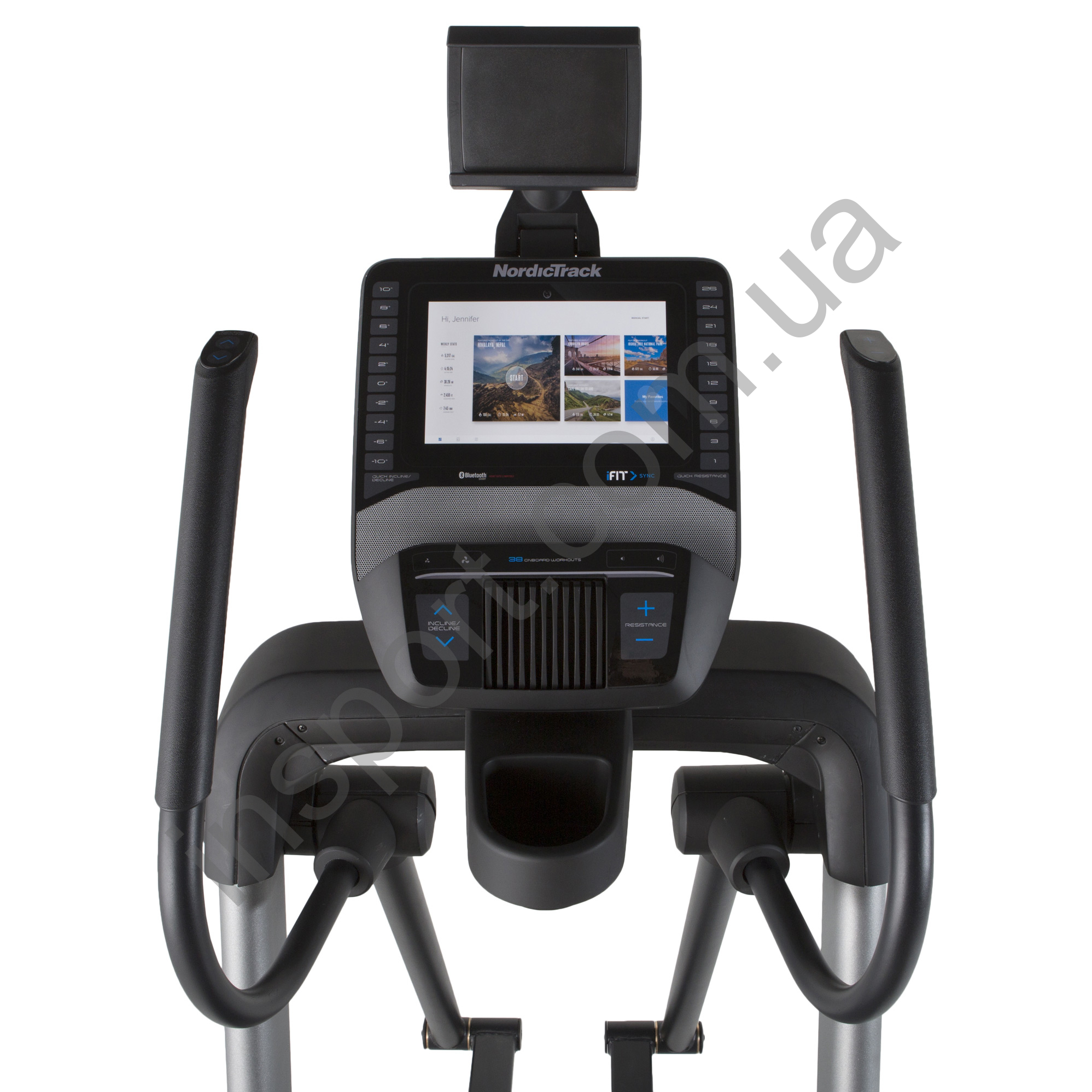 Отслеживать процесс тренировки и изменять программы нагрузки поможет удобный 10-дюймовый экран, на котором отображаются основные показатели работы – скорость движения, длительность тренировки, пульс, потраченные калории и пройденная дистанция. Тренажер безопасный, имеет пульсометр и педали с нескользящим покрытием, а для удобства во время длительных занятий орбитрек оборудован держателем для бутылки с водой, планшета, а также встроенный модуль iFit для тренировок в любой точке планеты.