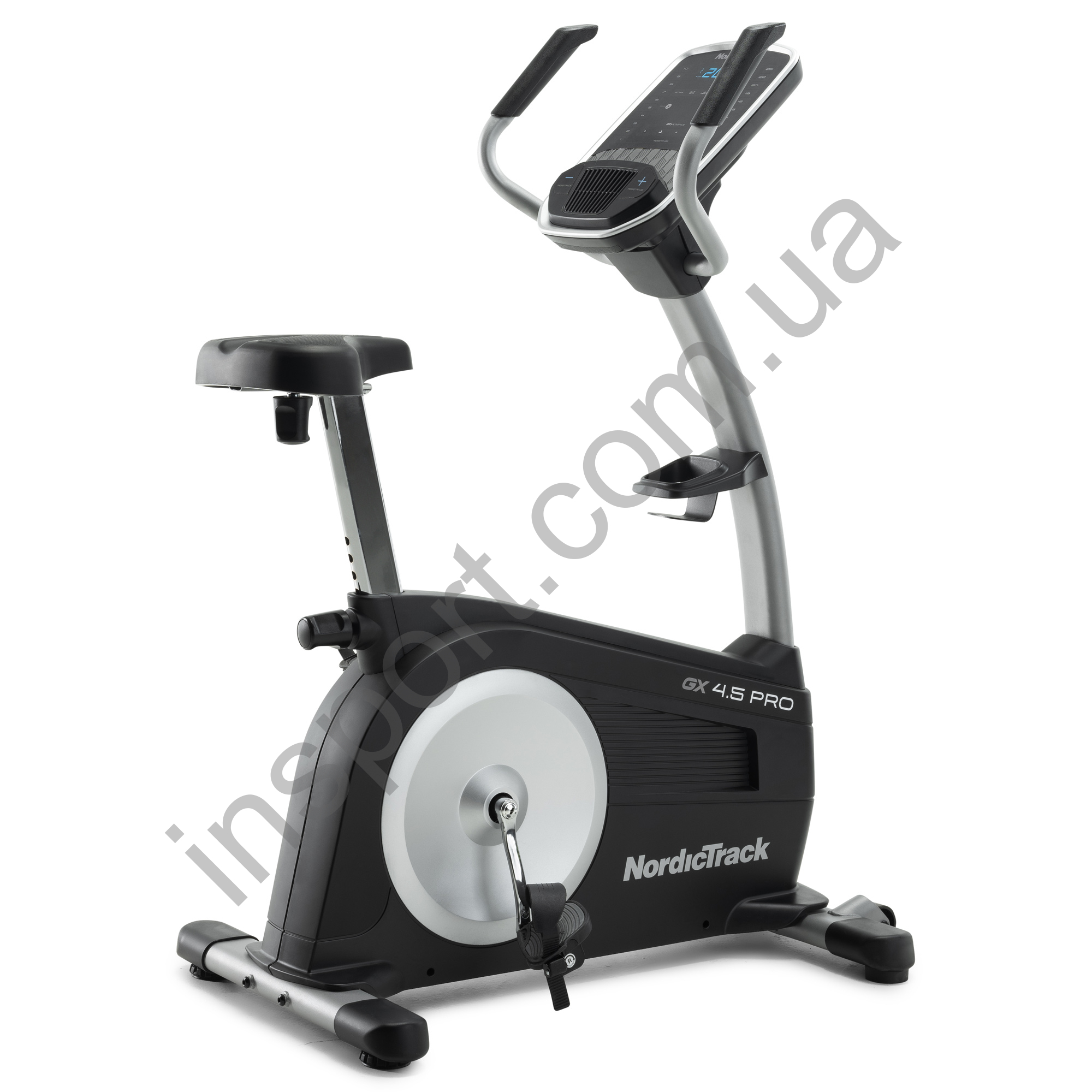 Велотренажер вертикальный NordicTrack GX 4.5 Pro - замечательный вертикальный велоэргометр с электромагнитной системой нагрузки. Он имеет 25-ти уровневую систему нагрузки. Маховик весом 9 кг расположен сзади. Питание происходит от электросети. Конструкция предназначена для коммерческого использования.