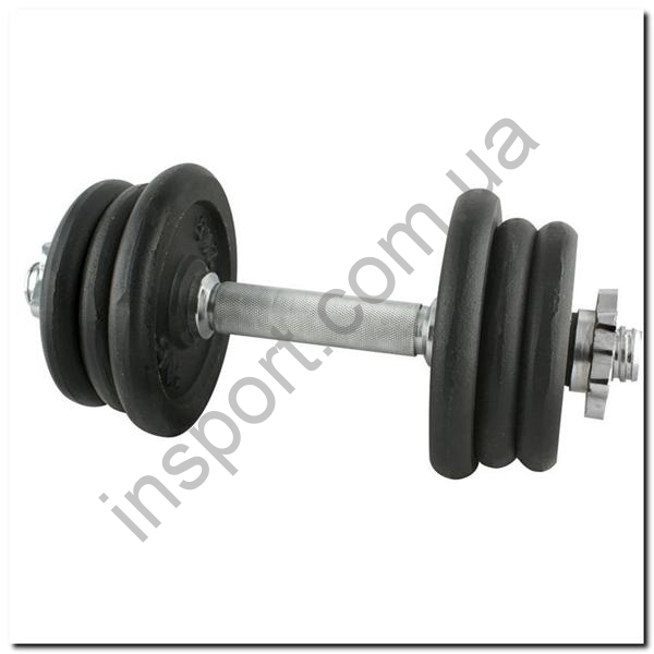 В комплект входят: прямой грифон 2 кг, 2 пластины 0,5 кг, 2 пластины 1 кг, 2 пластины 2,25 кг и 2 звезды зажимы 0,25 кг . Первый элемент выполнен из никелевой стали . В свою очередь, плиты представляют собой чугун .