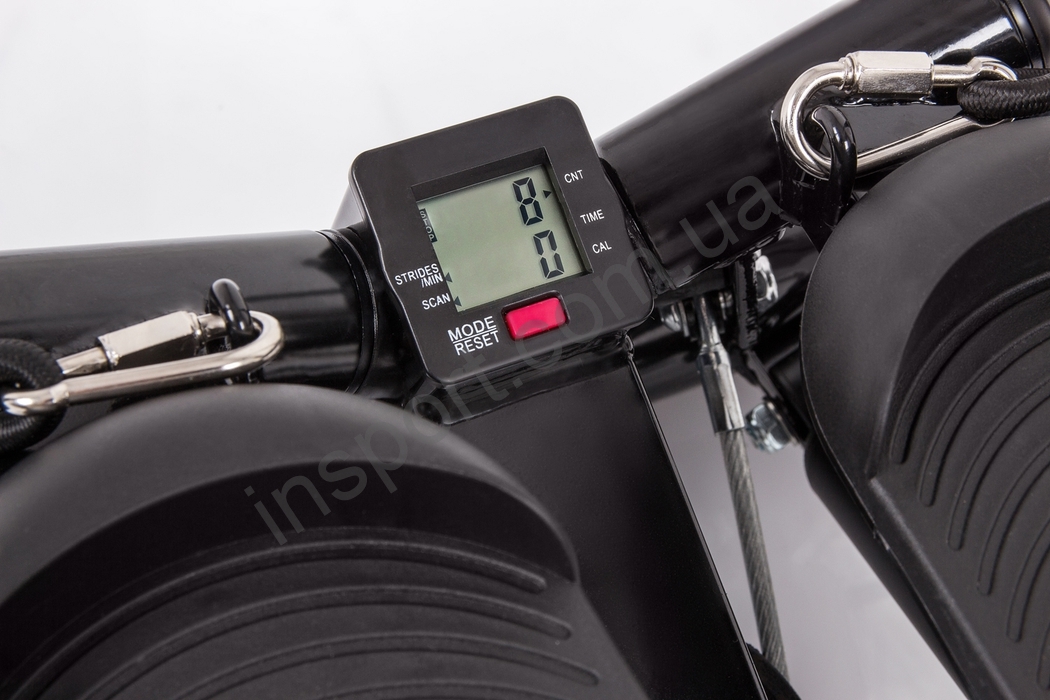 Показания компьютера: время тренировки, количество шагов, спаленные калории.