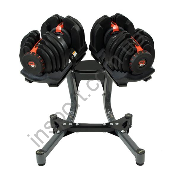 SR52 HMS - регулируемая гантель . В комплект входят шея, 10 тарелок и подставка. Устройство идеально подходит для людей, работающих дома, но также хорошо работает в учебной комнате, заменяя всю стойку традиционных гантелей.