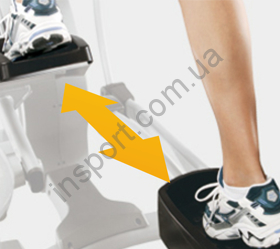 - технология супермалый Q-фактор (E.S.Q.F.™), который равен 56 мм. Расстояние между педалями - очень важный показатель для орбитреков. Чем меньше расстояние между ними, тем эффективнее тренировка.