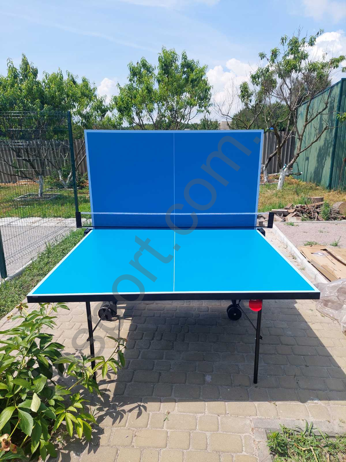 - для удобства перемещения, теннисный стол оснащен 4-мя колесами. Большие колеса диаметром 128 мм с резиновым протектором обеспечивают устойчивость и маневренность теннисного стола на неровных поверхностях