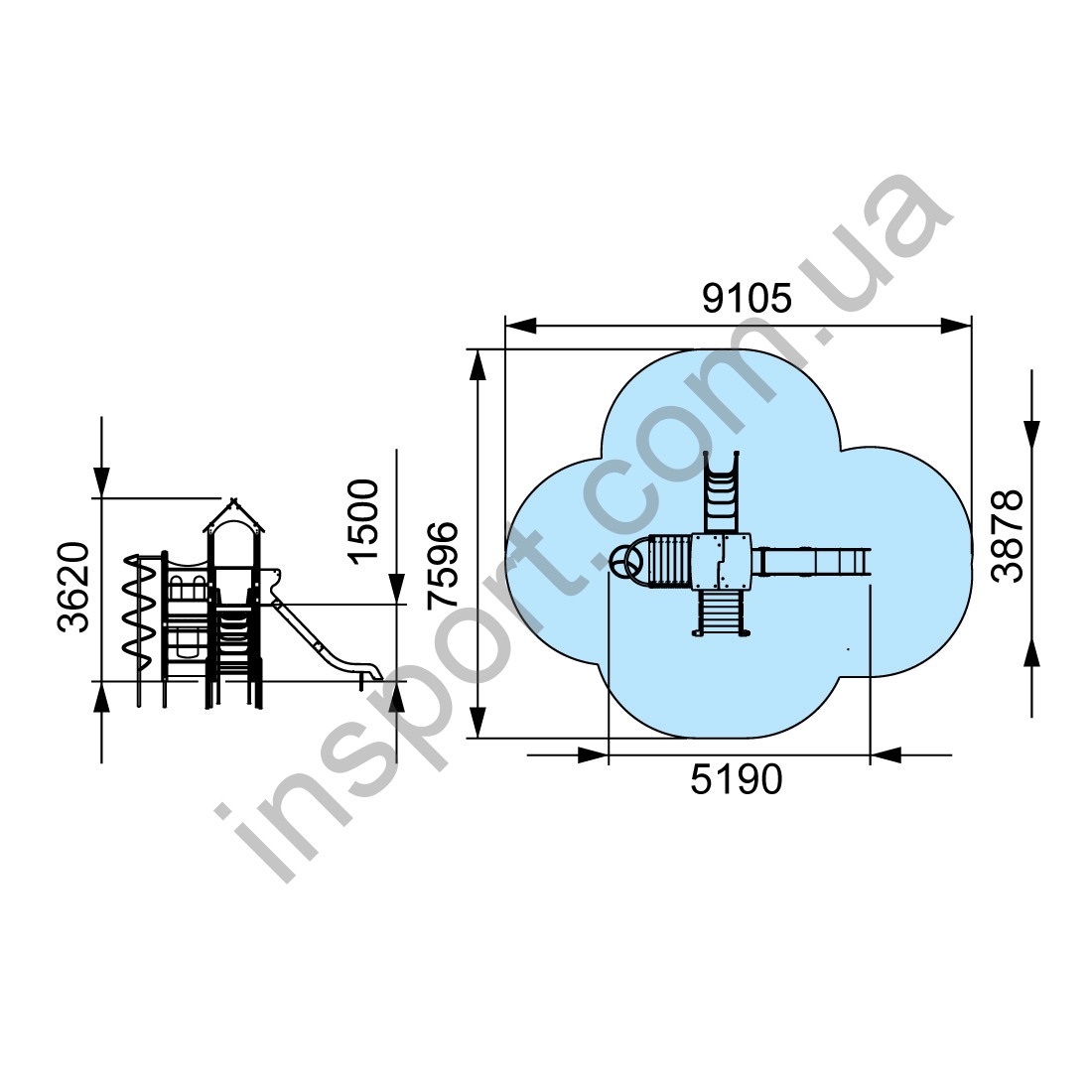 - комплекс состоит из двух платформ, установленых на стойках на высоте 1,3 и 1,5 метра