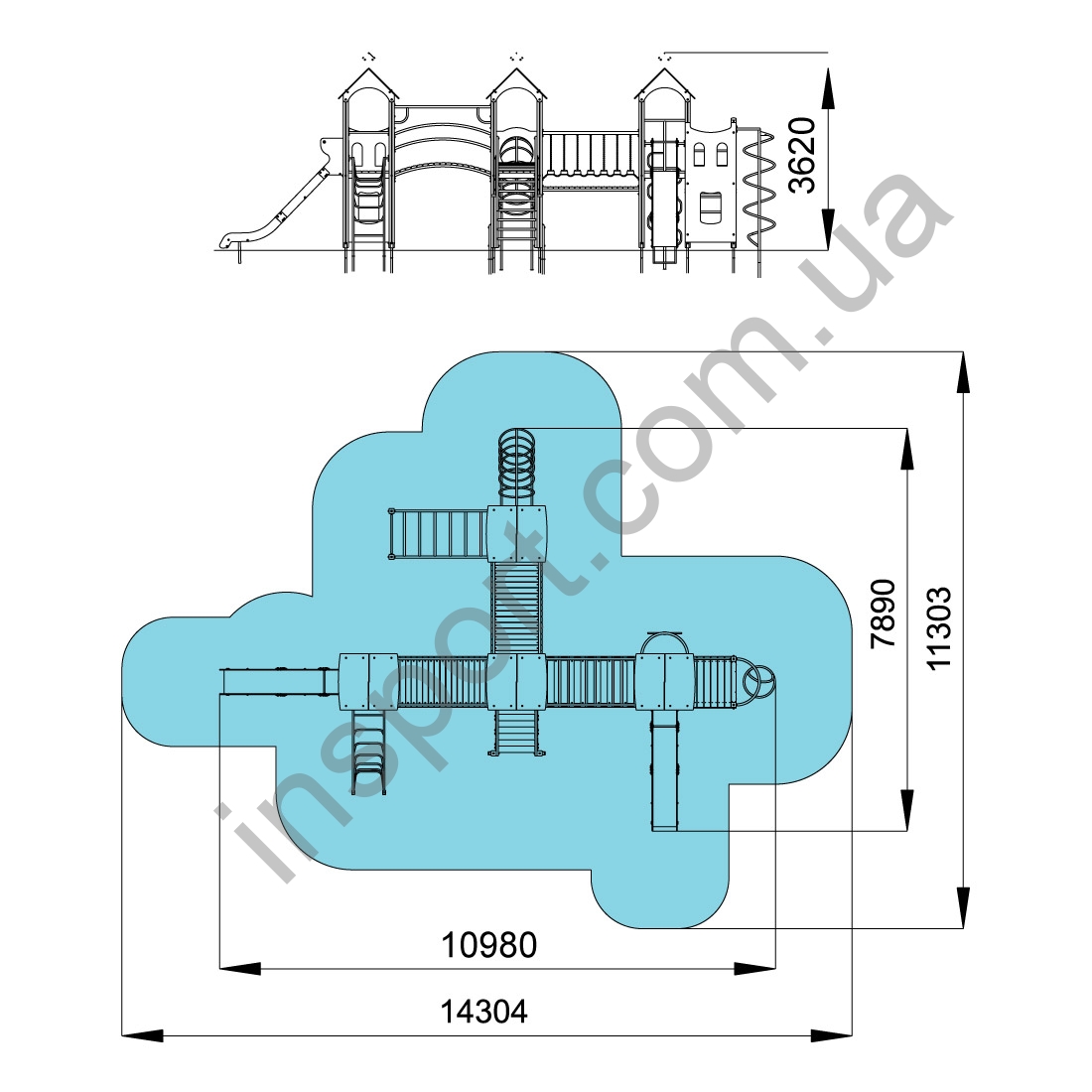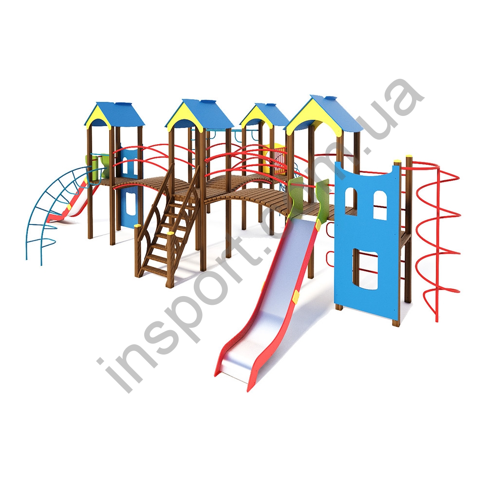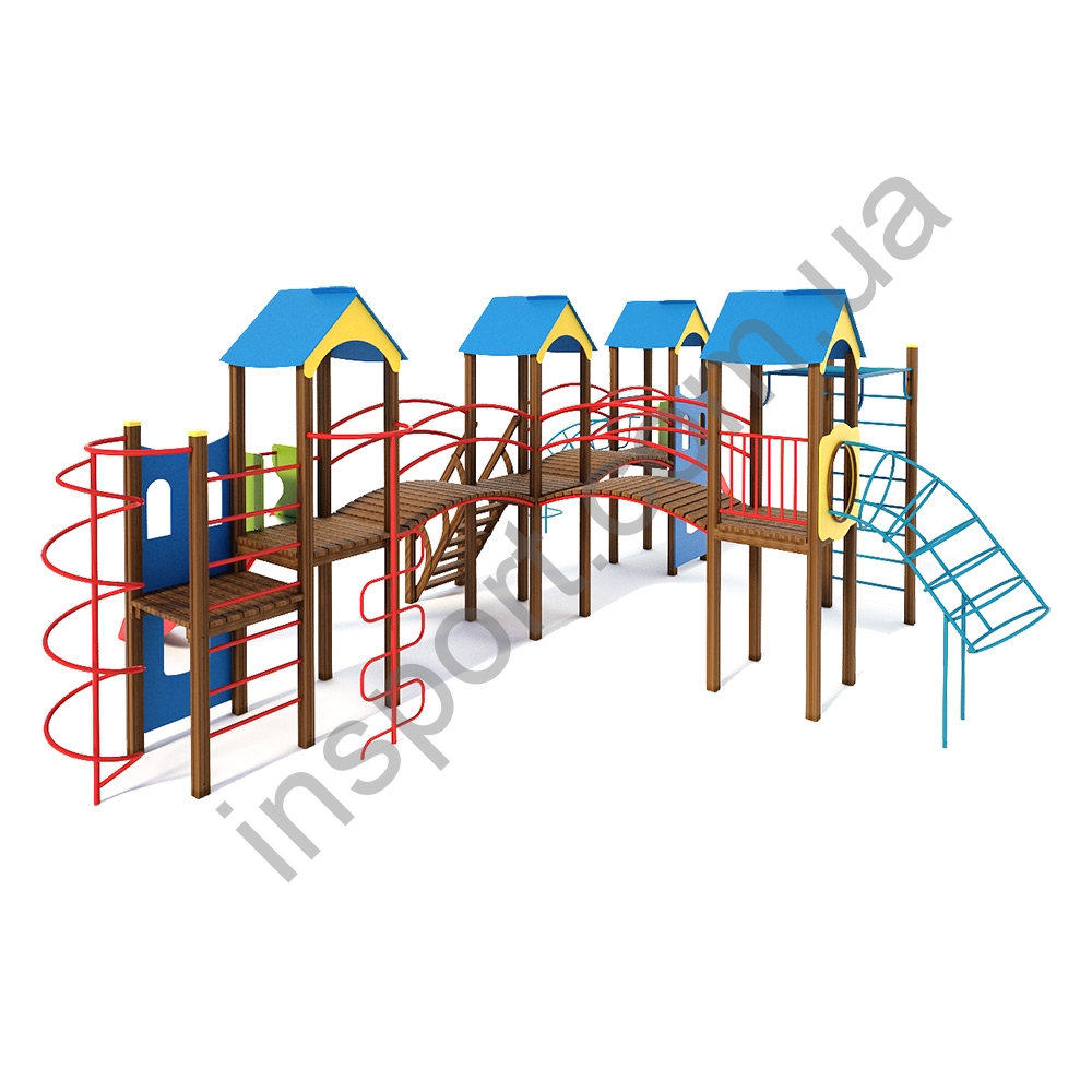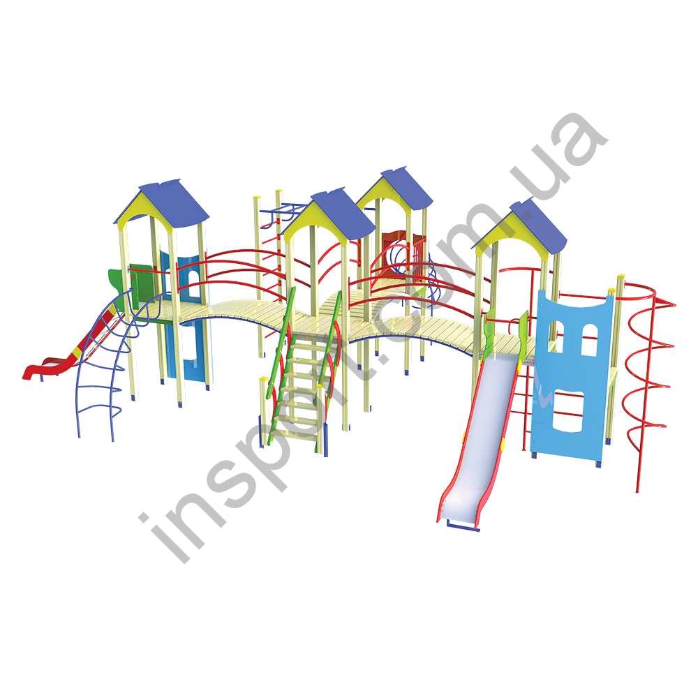 - комплекс состоит из четырех платформ, установленых на стойках на высоте 1,5 метра соединенных между собой мостами