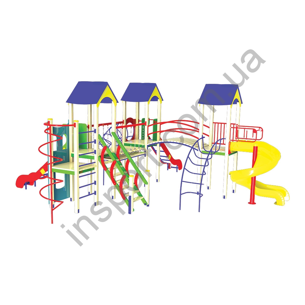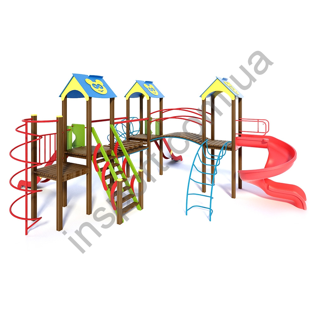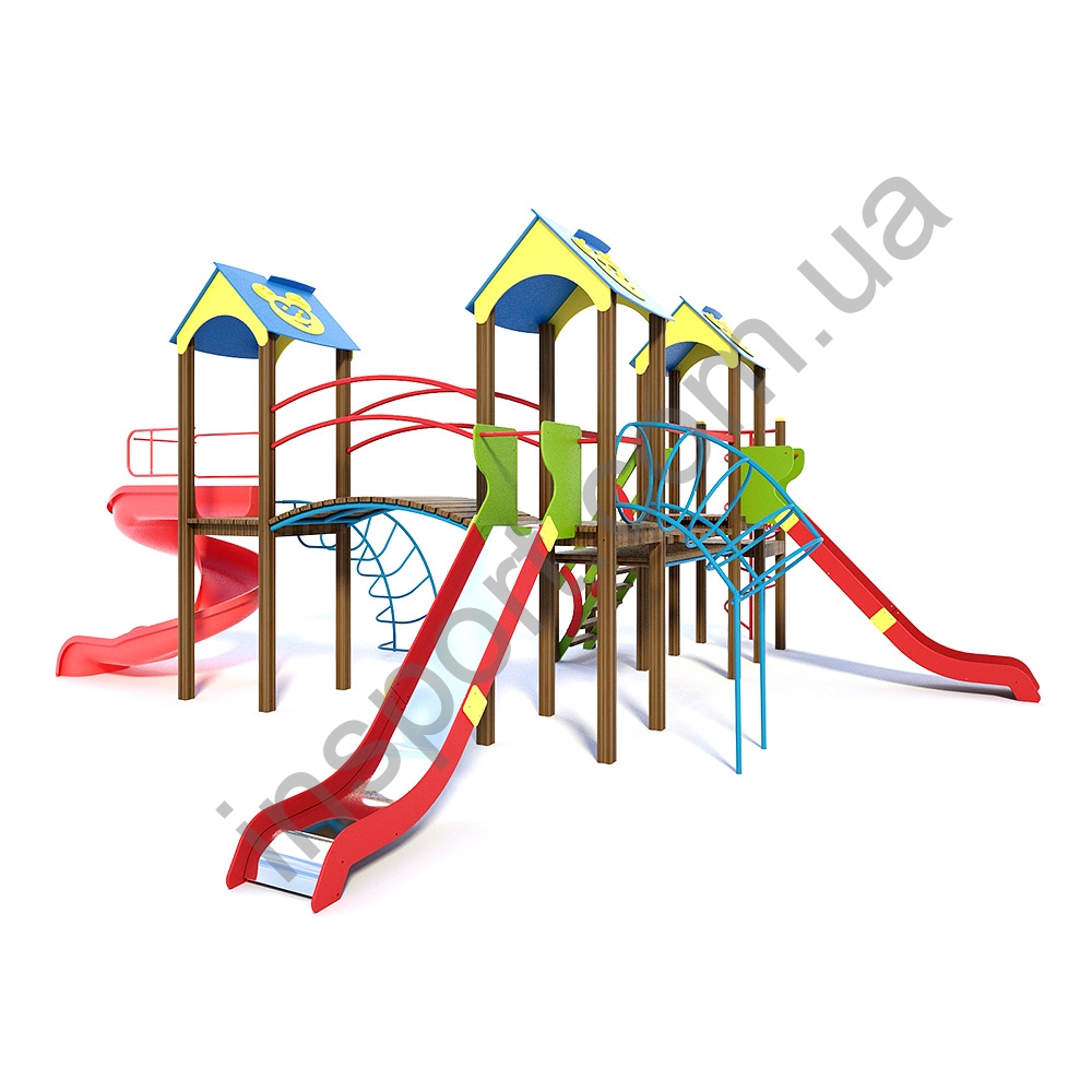- комплекс состоит из четырех платформ, установленых на стойках на высоте 1,5 метра соединенных между собой переходами различной конфигурации