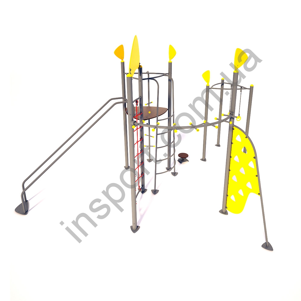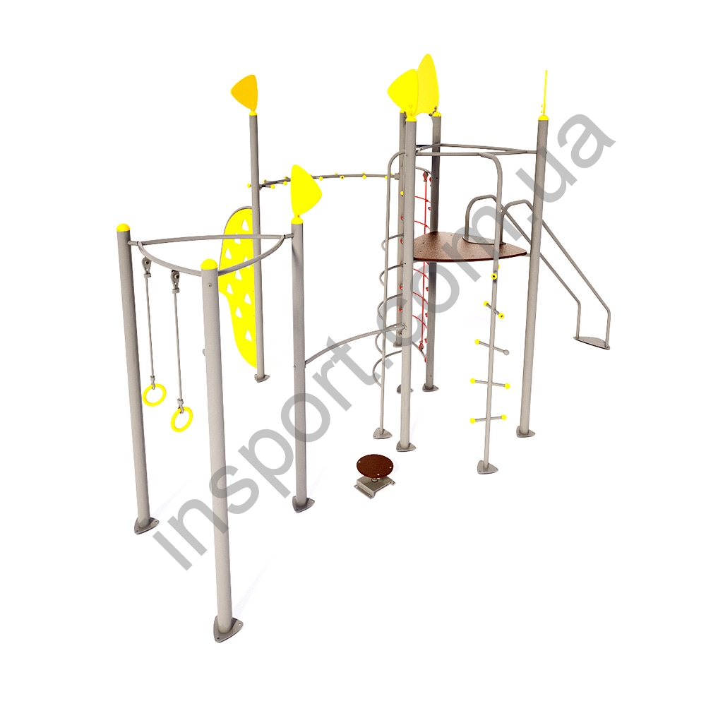Гимнастический комплекс "Квест" - яркая современная конструкция для детской площадки. Это многофункциональная конструкция, предназначенная для игр деток младшего школьного возраста. Дети с легкостью найдут себе занятие по душе и часами будут проводить время на этом игровом комплексе.