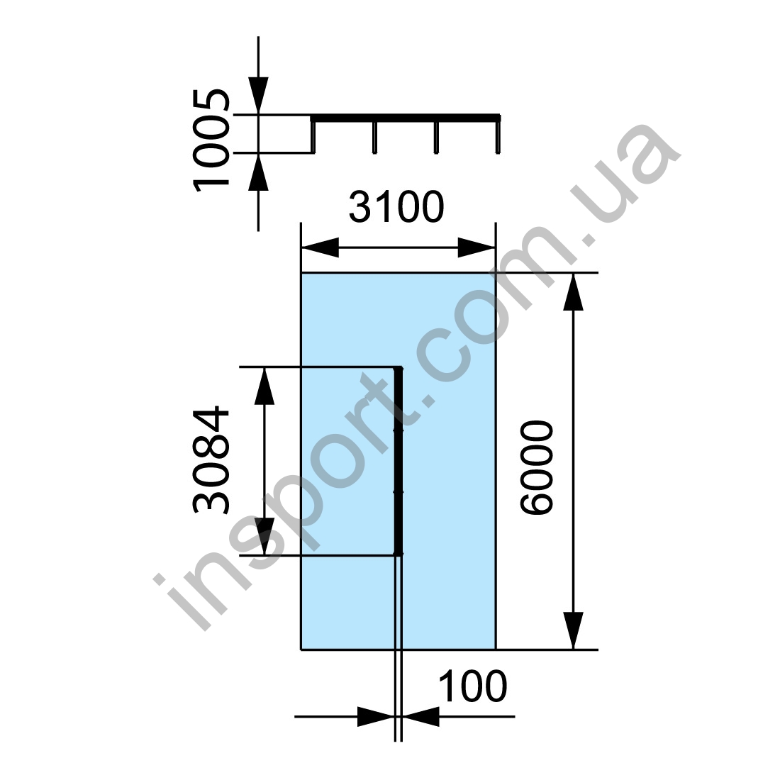 Габариты, мм: 3084х100х1006