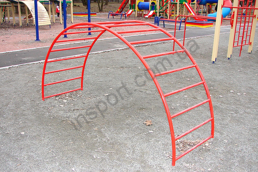 Лестница - мостик - представляет собой перекладины с полусферическим расположением для хождения по нему с целью развития координации движения и силовых навыков детей.