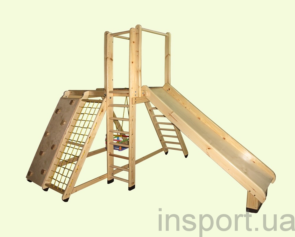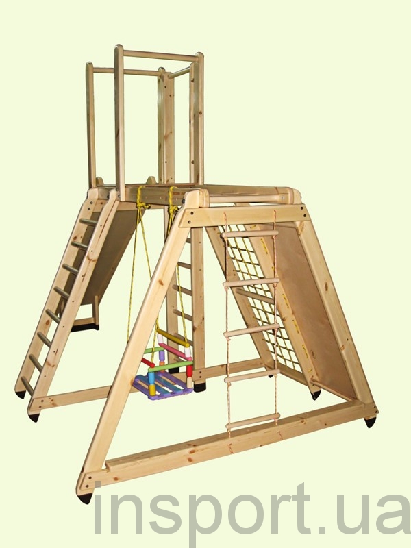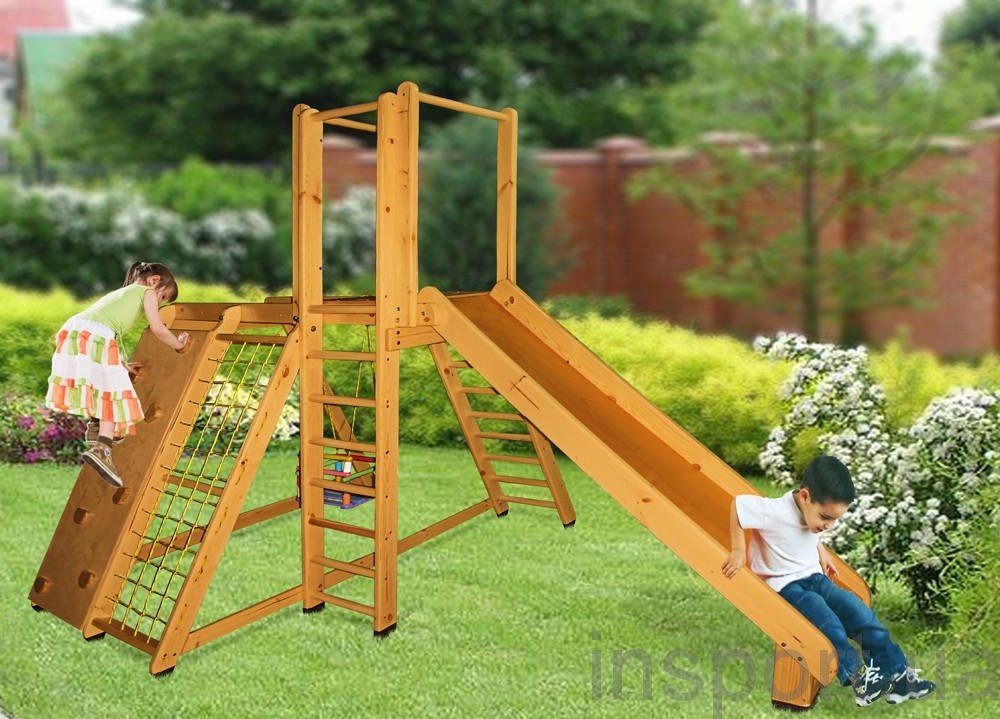 Деревянные спортивно - игровые комплексы для дачи и загородного дома – лучшее решение для активного отдыха детей. Наш комплекс включает в себя самые необходимые элементы — горку, стенку для лазанья с зацепами, гладиаторскую сетку, рукоход, веревочную лесенку и подвесную качелю. Это полноценная спортивно-игровая площадка, которая способствует физическому и умственному развитию детей. Регулярные занятия на уличных игровых комплексах тренируют основные группы мышц, укрепляют позвоночник, развивают координацию движений, повышают иммунитет и способствуют поднятию тонуса организма. И что немаловажно, они еще и развивают коммуникативные навыки, играя со сверстниками, ребенок общается и учится находить выход из различных ситуаций.