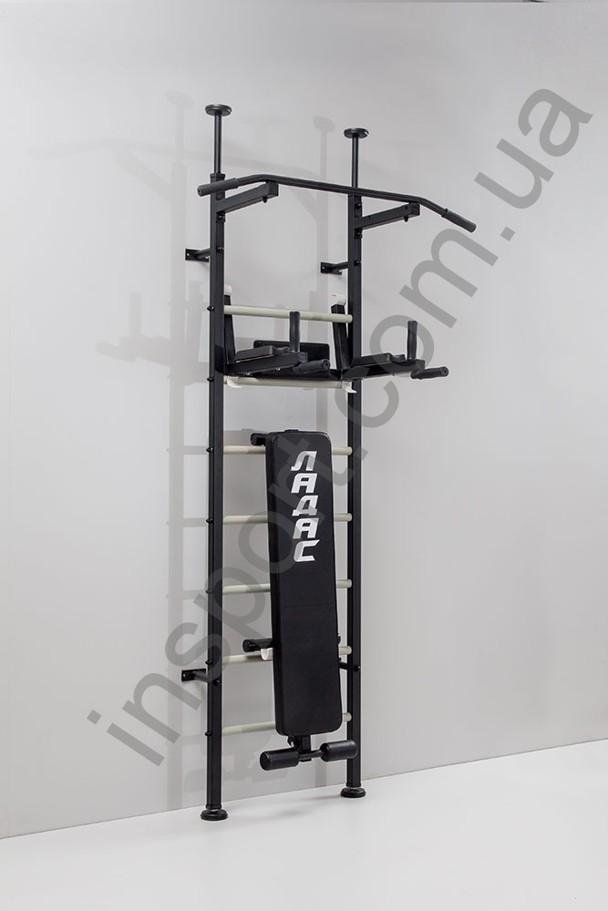 | Комплектация | Шведская стенка с металлическими перекладинами с пластмассовым покрытием, турник с широким хватом, полиуретановые брусья с подставкой под штангу, лавка "пресса" |