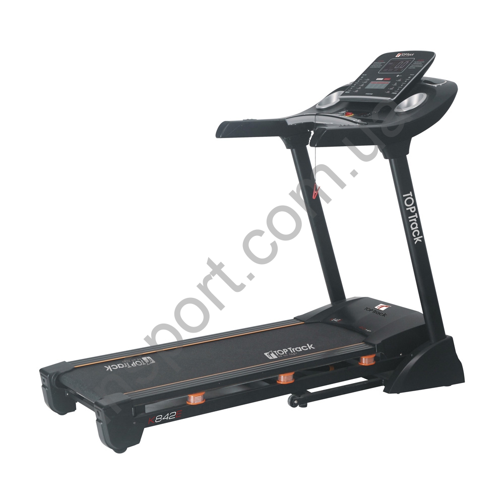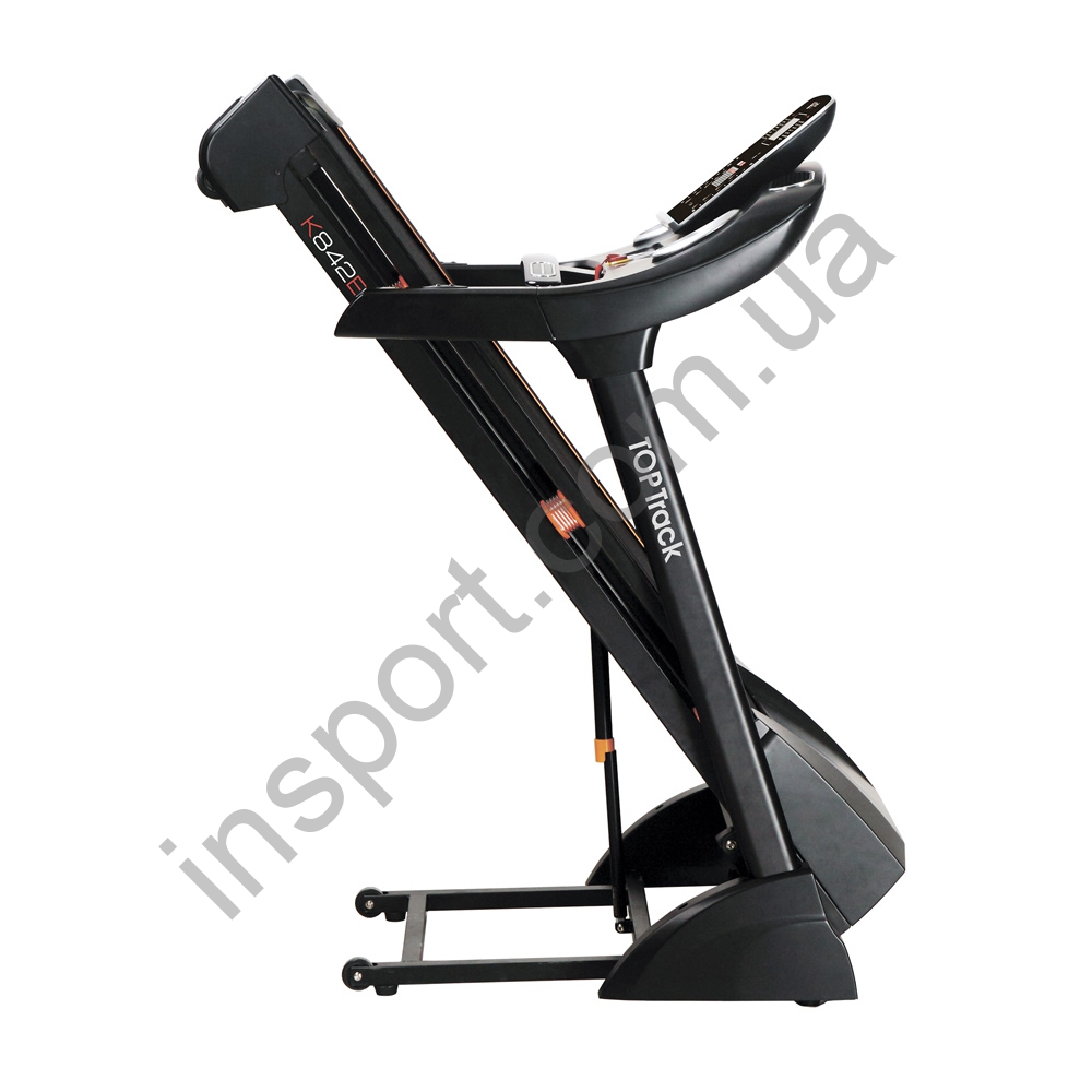 Беговая дорожка TopTrack K842E - домашняя качественная беговая дорожка. Комфортность занятий обеспечивается за счет прочной и эргономичной конструкции тренажера, а набор программ и функций поможет сделать занятия на беговой дорожке максимально эффективными. Механизм складывания позволяет максимально компактно складывать тренажер при хранении, что особенно удобно в использовании беговой дорожки в домашних условиях.