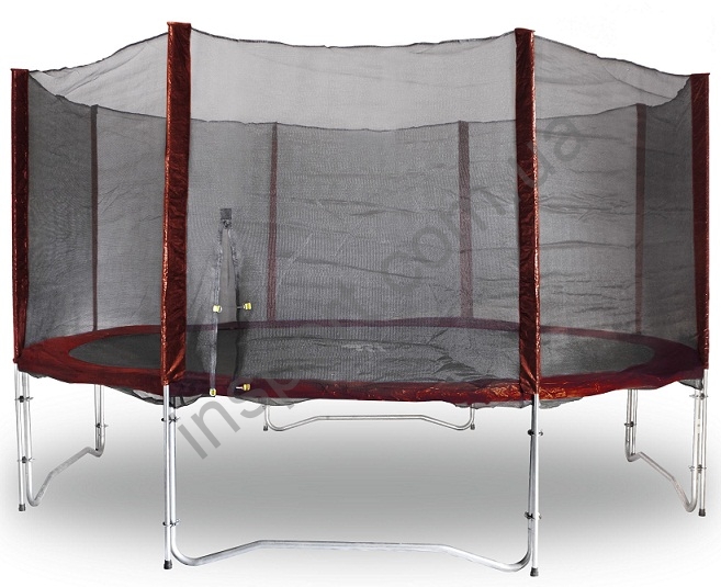 Стойки защитной сетки сделаны из оцинкованой стали и защищены мягким вспененным материалом из полиэтилена, что позволяет избежать травм и повреждений после контакта с металлическими деталями защитной сетки батута.