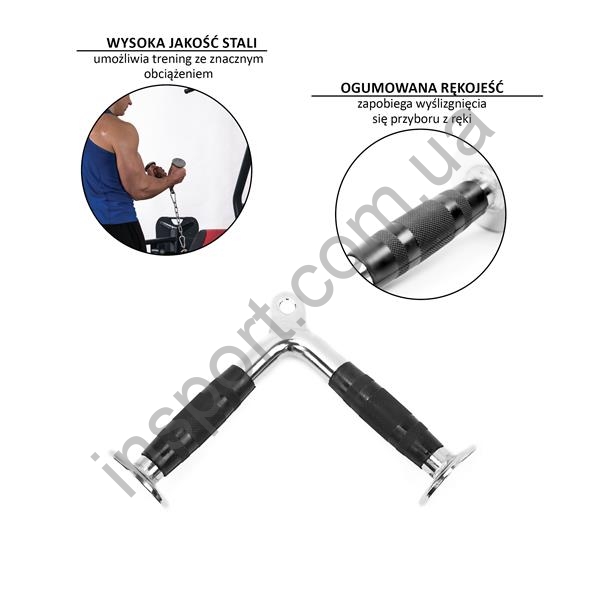Рукоятка HMS UW06 - треугольная рукоятка. Применяется не только для силовых занятий, но также и для физкультуры или аэробики. Спортивный снаряд сделан из высококачественной и прочной стали. Прорезиненная ручка обеспечивает надежное и удобное сцепление, что предотвращает соскальзыванию рук во время выполнения упражнений. Выполняя упражнения верхней и нижней тяги с помощью рукоятки для тренажера можно добится значительных спортивных результатов: развить мышцы спины, увеличить силу и мощность верхней/нижней части тела. Кроме этого, упражнения с рукояткой способствуют приданию торсу V-образного вида, приобретению тонкой талии, красивой осанке спины.
