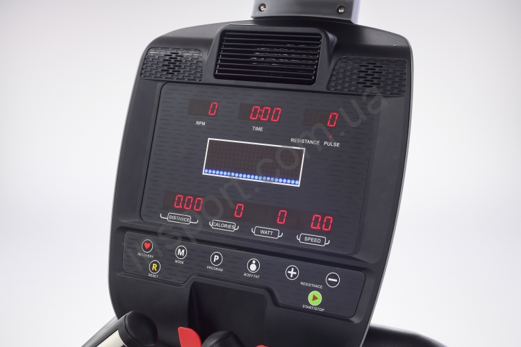 Показания дисплея: Время, расстояние, калории, скорость, уровень нагрузки, ватты, пульс, профиль;