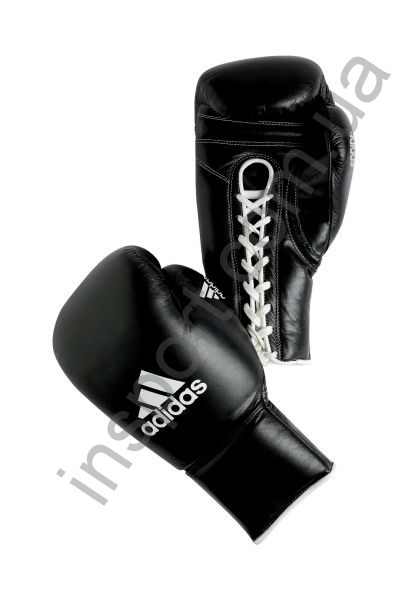 Профессиональные кожаные боксерские перчатки Adidas "PRO" черного цвета. Перчатки Adidas "Pro" с контрастным сшиванием, шнуровкой, наполнены мягкой пеной максимально защищают от травм и обеспечивают комфорт во время спарринга. Adidas "PRO" - выбор профессионалов!