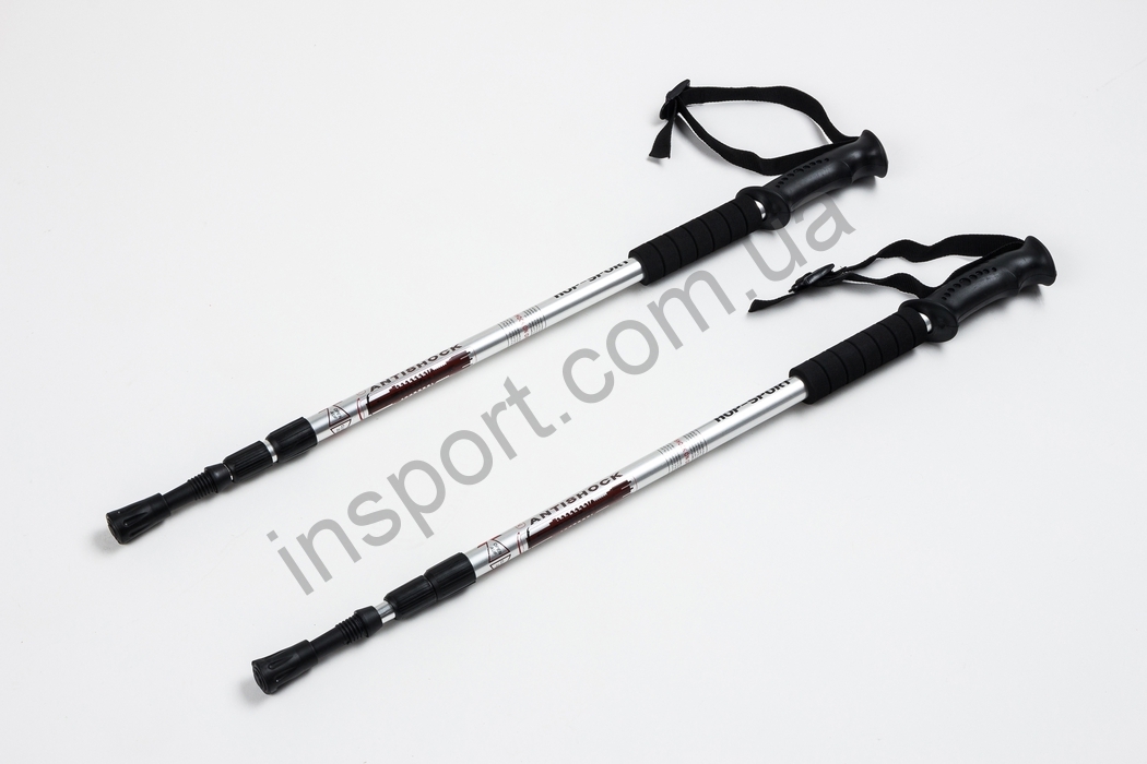 Регулируемые трекинговые палки идеально подходят для пеших прогулок. Палки имеют систему поглощения удара "анти-шок", а также удобную ручку на запястье. Треккинговые палки изготовлены из 100% легкого алюминия. Благодаря этому продукту длительные походы в горные районы станут намного легче.