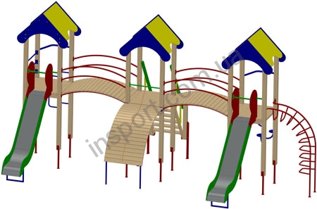 Игровой комплекс "Трехбашенный" - возрастной диапазон от 3 до 10 лет. Детский комплекс для игровых площадок.