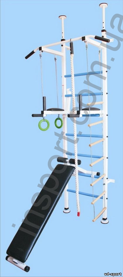 - стойка с жестко закрепленным турником - навесные брусья с подставкой под штангу для жима - навесная скамья для пресса, складывающаяся, с валиком для ног - детский веревочный комплект (лесенка пластиковая, гимнастические кольца, канат) - комплект распорок пол-потолок и 4 кронштейна к стене (без дюбелей/анкеров) |