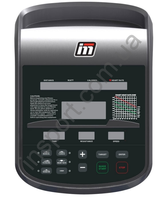 информирование: время тренировки (TIME), пройденная дистанция (DISTANCE), скорость(SPEED), затраченные калории (CALORIE), частота сердечных сокращений (PULSE), мощность (WATT), уровни нагрузки