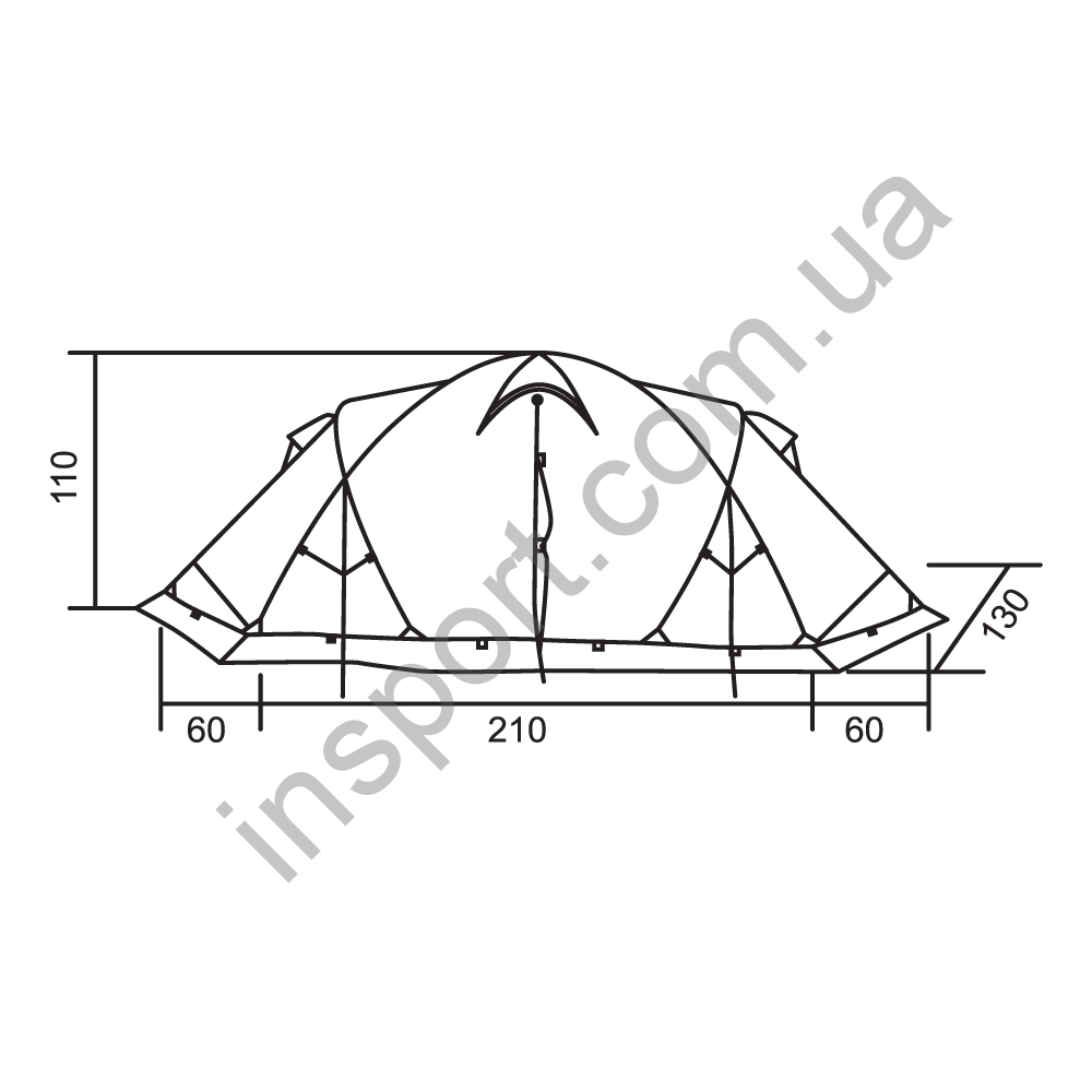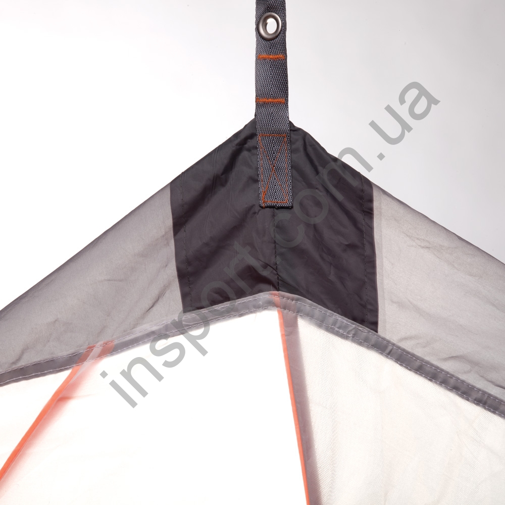 Дно усилено по углам дополнительным слоем ткани. Все швы проклеены PU - лентой. Уровень водонепроницаемости дна 10 000 мм водного столба. Проклеенные швы тента и дна придают палатке дополнительную водонепроницаемость.