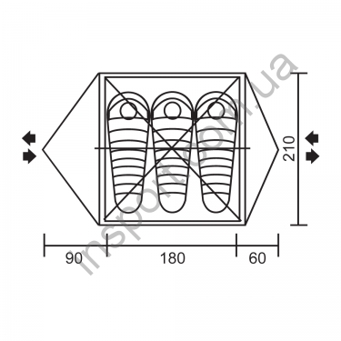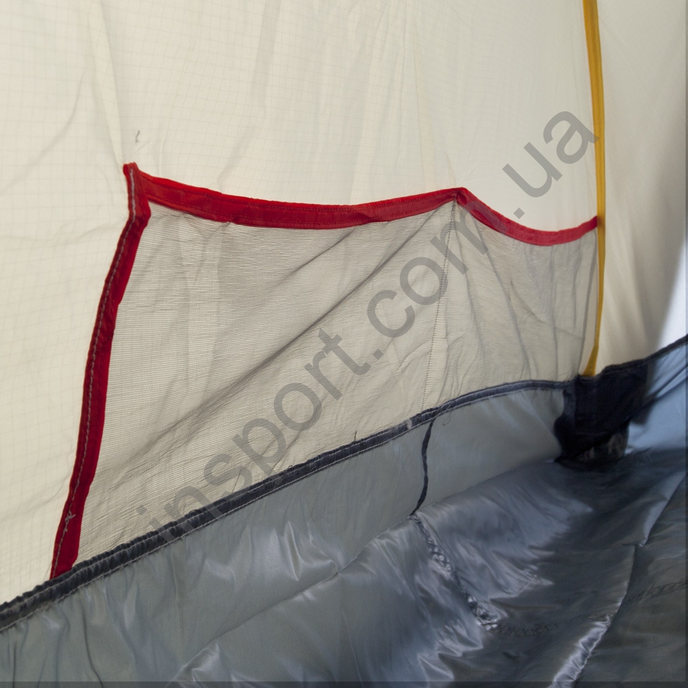 Дно палатки изготовлено из плотного легкого нейлона 68D. По углам усилено дополнительным слоем ткани. Все швы проклеены PU - лентой. Уровень водонепроницаемости дна 10 000 мм водного столба. Проклеенные швы тента и дна придают палатке дополнительную водонепроницаемость.