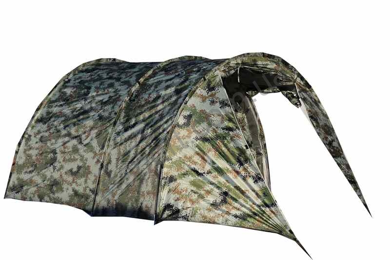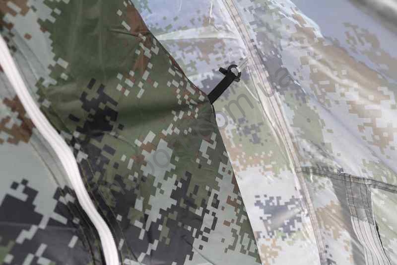 Каркас палатки образуют секционные дуги выполненные из прочного стекловолокна. Пол выполнен из полиэтилена.