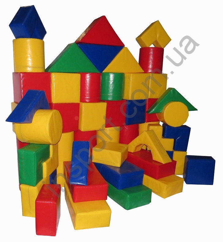 Ткань, которой обтянуты поролоновые фигуры, легко поддается мойке и дезинфекционной обработке. Благодаря этому, возможно использование конструктора не только в помещении, но и на свежем воздухе.